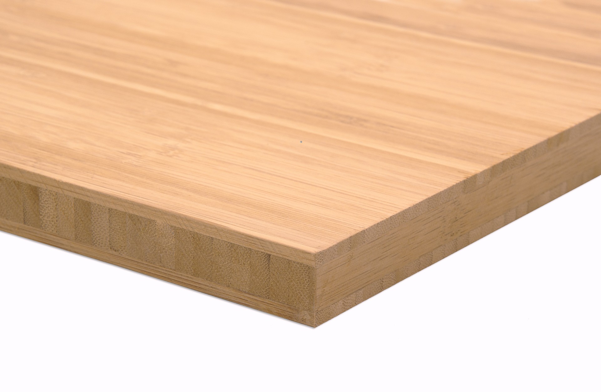 Deze plaat is vooral interessant bij toepassingen waar de zijkant zichtbaar is, zoals traptreden en keuken-werkbladen. Wij kunnen een ruim aanbod in Bamboe aanbieden in verschillende uitvoeringen, diktes en afmetingen. Is er een andere uitvoering benodigd, neem contact op met de afdeling Verkoop.